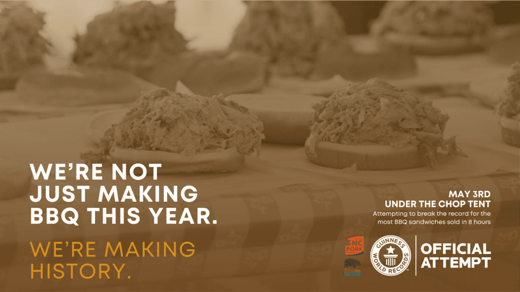 (last updated May 2, 2025)The North Carolina Pork Council and Smithfield Foods are teaming up with the annual “BBQ Fest on the Neuse” event Saturday in Kinston in an attempt to set the Guinness World Record for the most barbecue sandwiches sold in eight hours, and the organizations are donating the proceeds to local community organizations.Approximately 100 of North Carolina’s best pit-masters are gathering in Kinston to compete in the annual BBQ Fest cook-off, and their award-winning, slow-cooked pork will be used for the sandwiches.